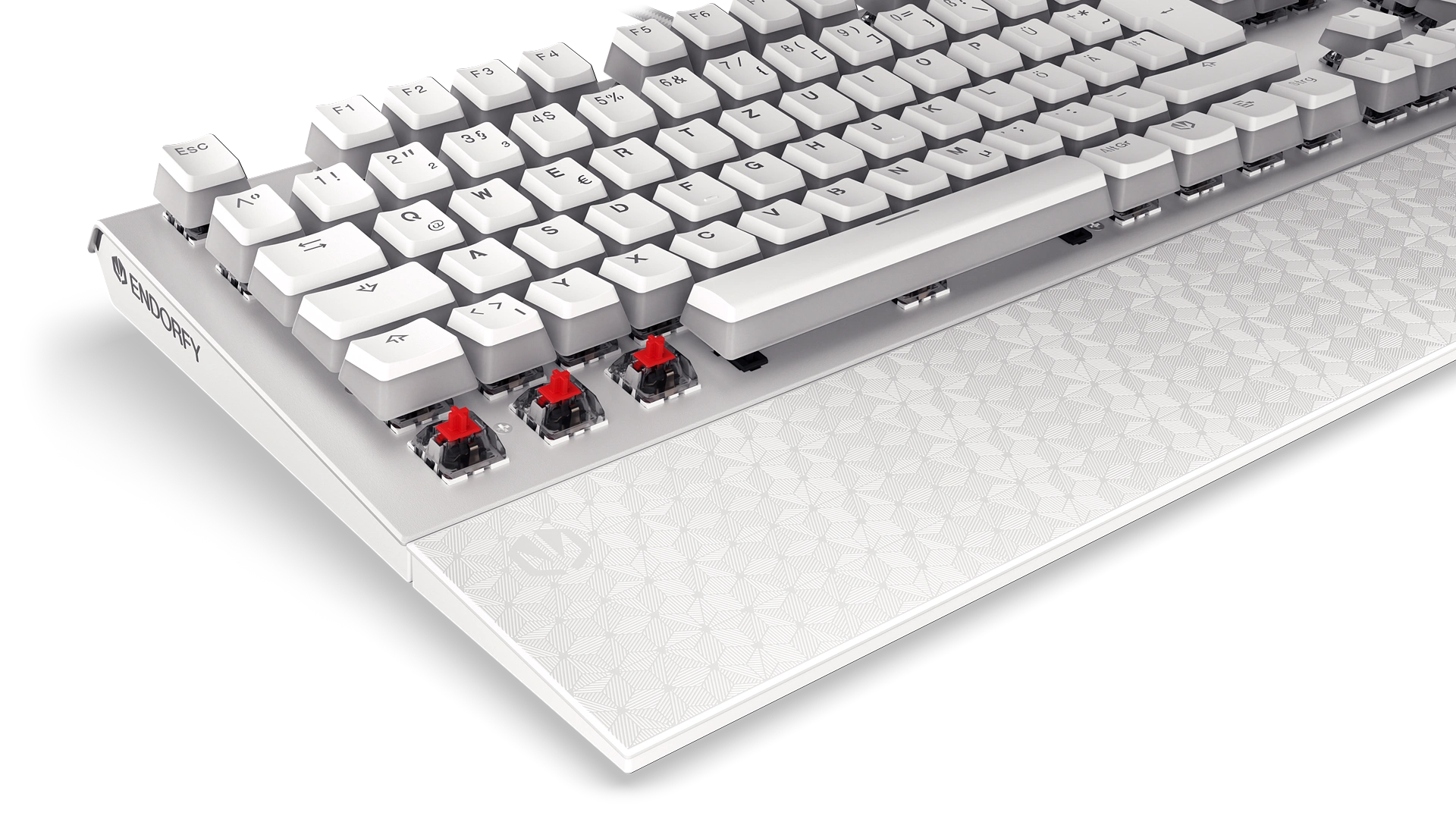 A white chassis is an instant +1000 bonus to appearance, so Omnis DE Kailh Red Onyx White Pudding could easily be voted our prettiest keyboard. Just look at its bright aluminum top and highlighted Pudding keys with a hGerman layout and tell us you don’t want to put a framed photo of this beauty on your nightstand.