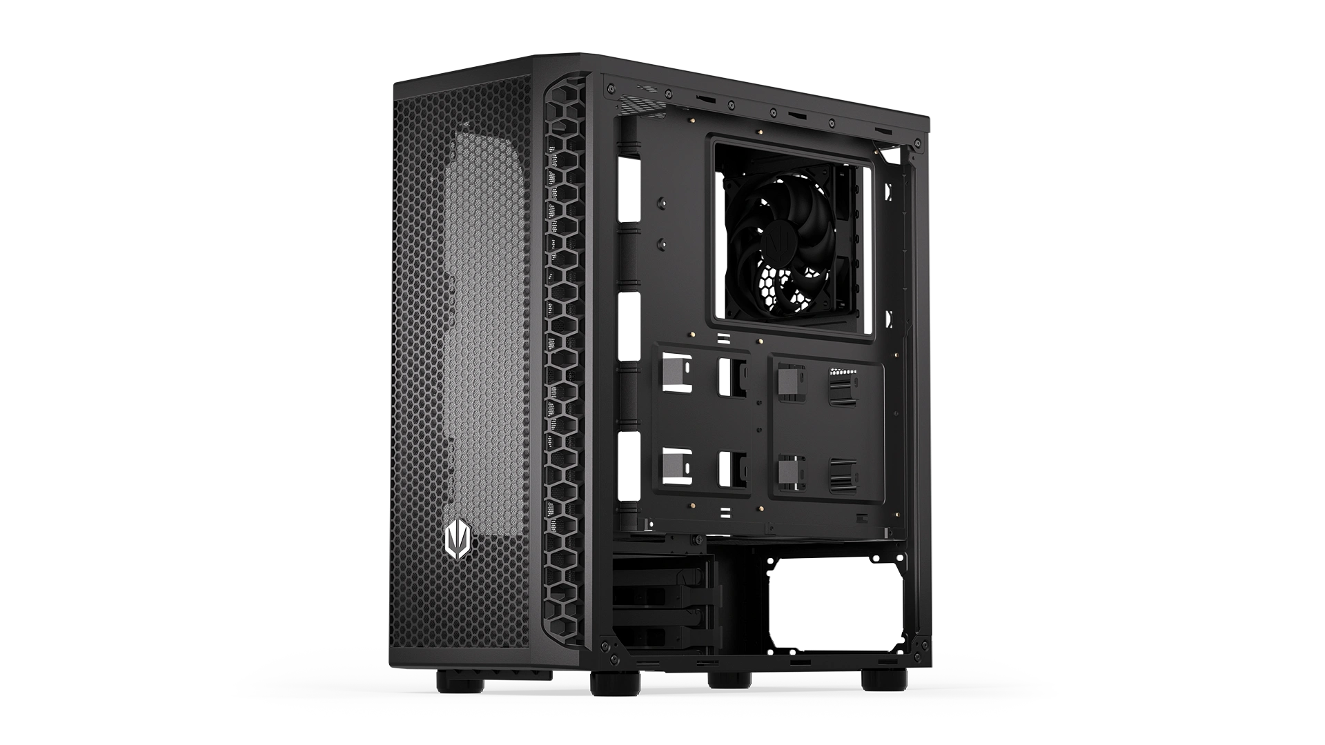 It was designed to impress, and we think it does a pretty good job – the case looks rad and maintains a fresh draft around the PC components. You can easily fit a tall CPU cooler and a 350 mm long graphics card inside. There is also space for eight fans – including one Stratus 120 PWM that we’re throwing in.
