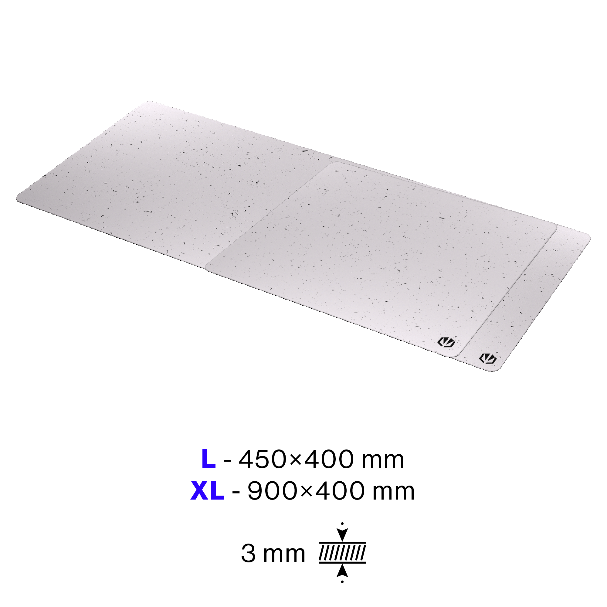 The L size (450×400 mm) offers ample space for wide mouse movements and even your keyboard, while the colorful stitched edges reinforce the border and prevent fraying. The surface is moisture-resistant and easy to clean. Thanks to its non-slip rubber layer on the underside, Stoneflow White L remains firmly in place even during intense online battles.