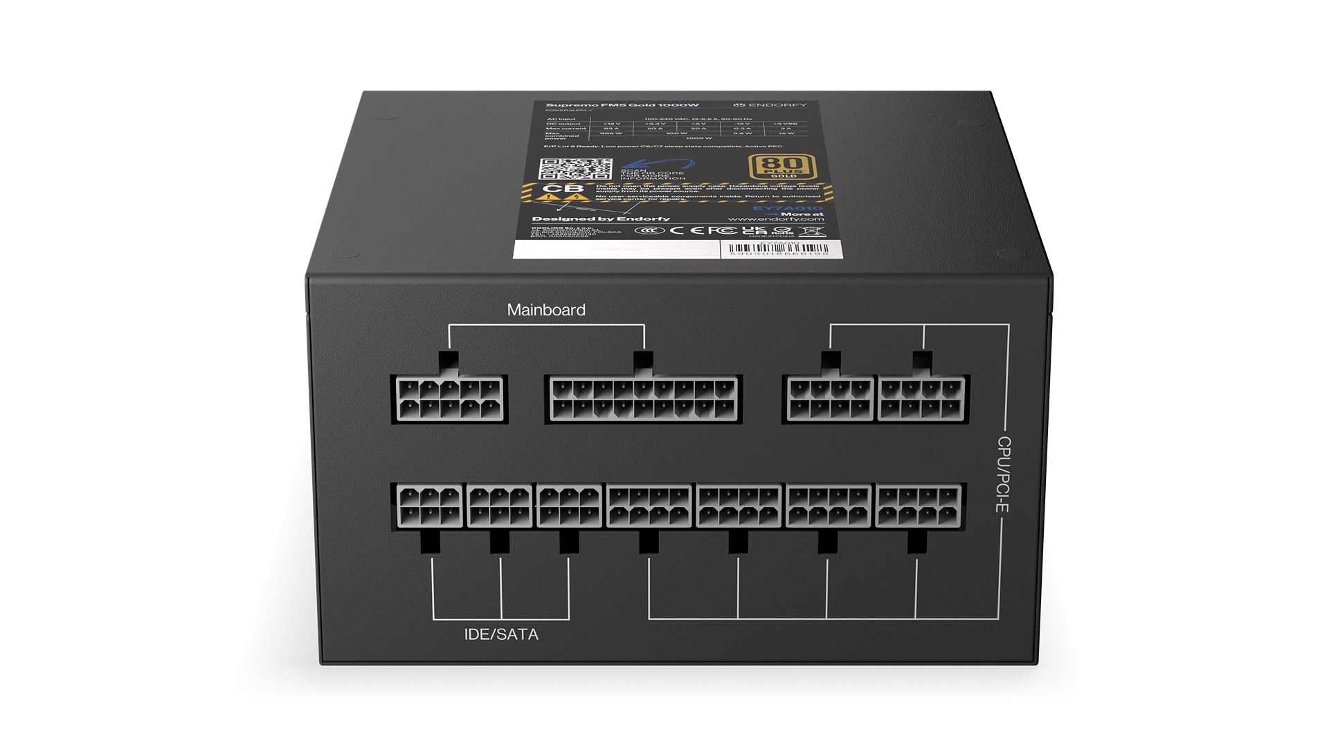 We’ve packed the Supremo FM5 Gold 1000 W with everything we think is best. For example, you get the 12 cm 120 mm Fluctus fan to keep your power supply frozen cool. The Supremo FM5 Gold 1000 W is also small – it’s only 14 cm long. That's enough to fit it into smaller enclosures. No wonder our power supply has been certified 80 PLUS® Gold!