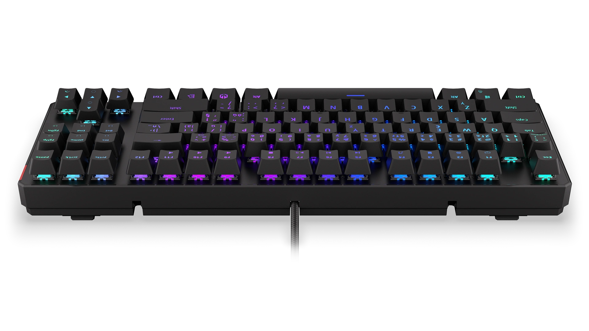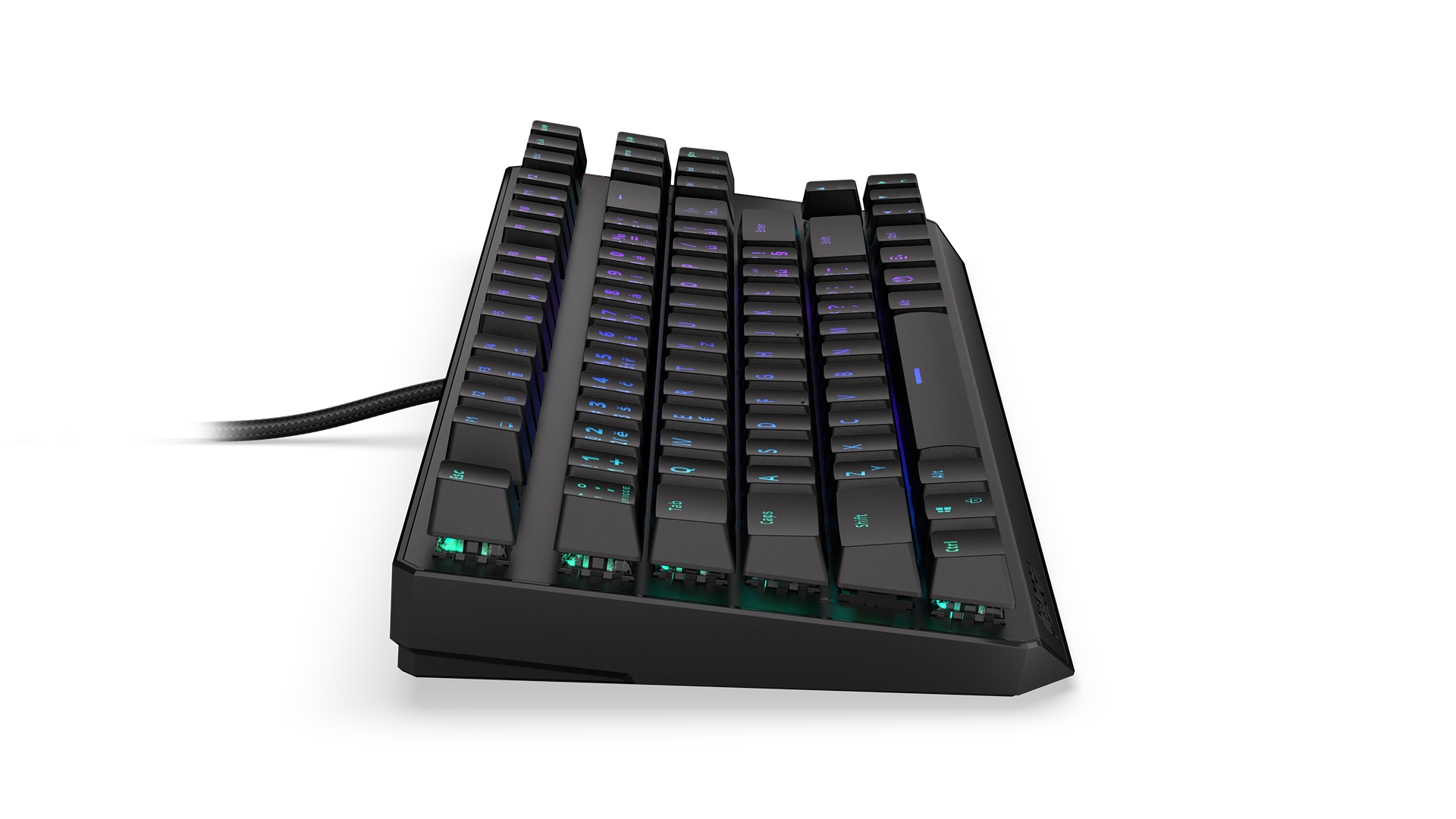 We reinforced its chassis with an aluminum shield plate and fitted it with 87 ABS keycaps with a Czech layout. Pleasant to the touch, they await your commands battle-ready. Underneath each key lies hidden a “tactile” Kailh Brown mechanical switch — registering even subtle keypresses while still granting you the certainty of feeling the activation bump. You’ll never miss another dodge.