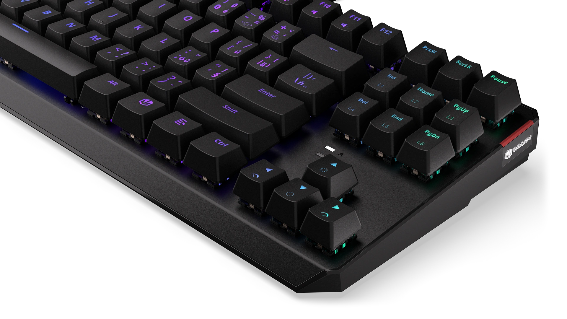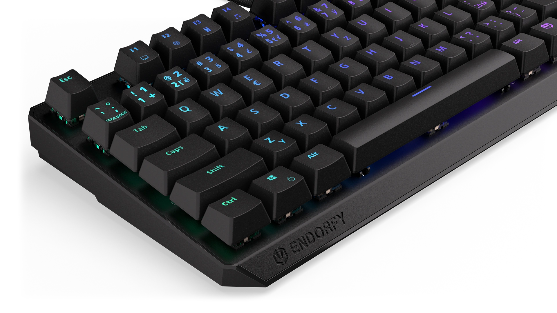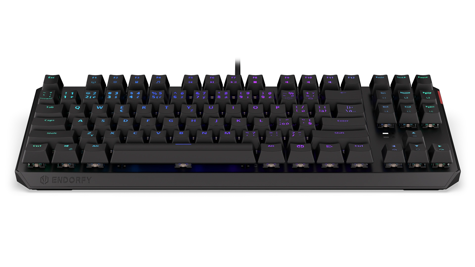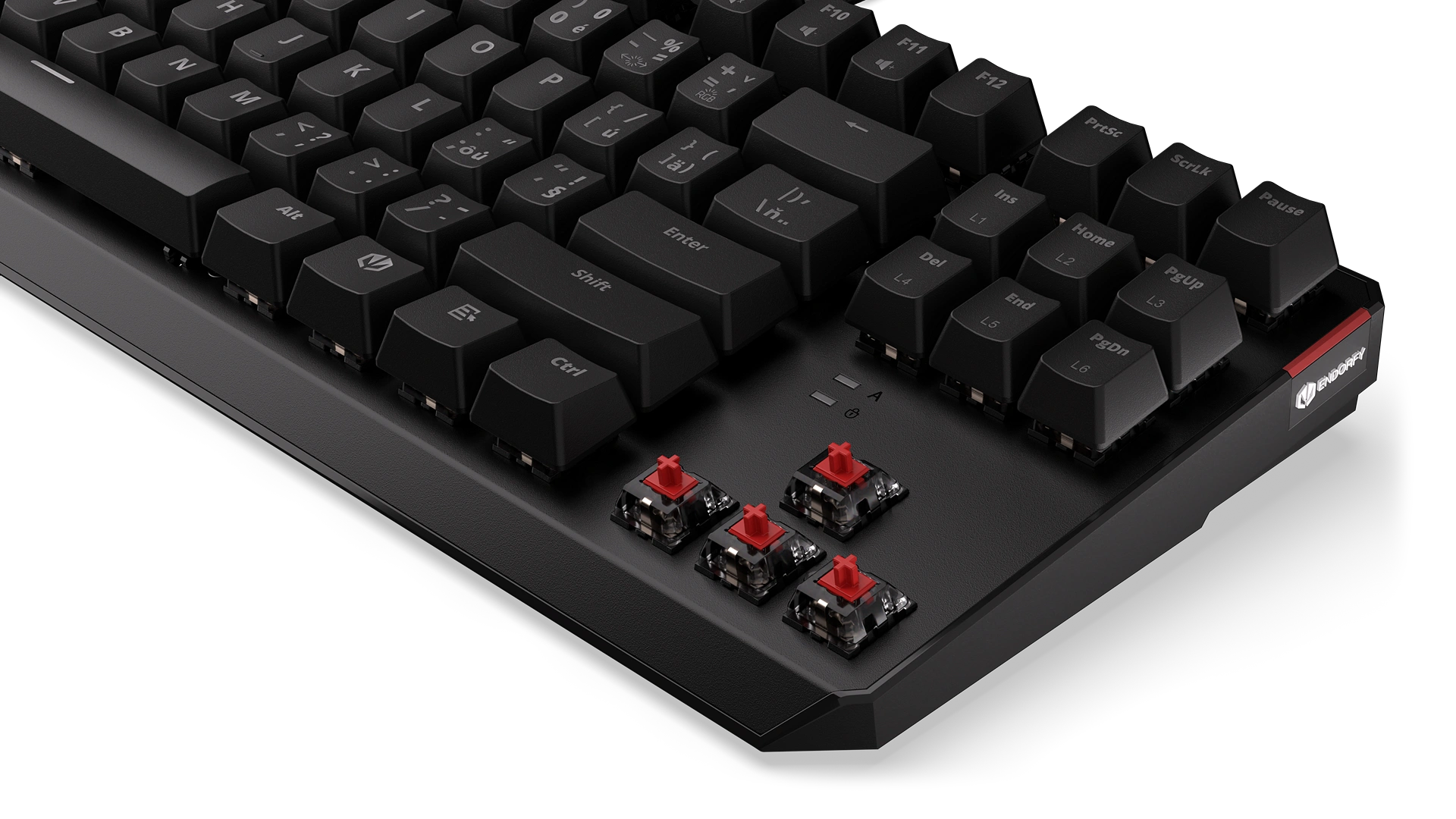 We covered the switches with ABS keycaps with a Czech layout. They hold your fingers in place so well that you won't slip off the keys even during a fierce battle. Seriously – we’ve tested this many times.