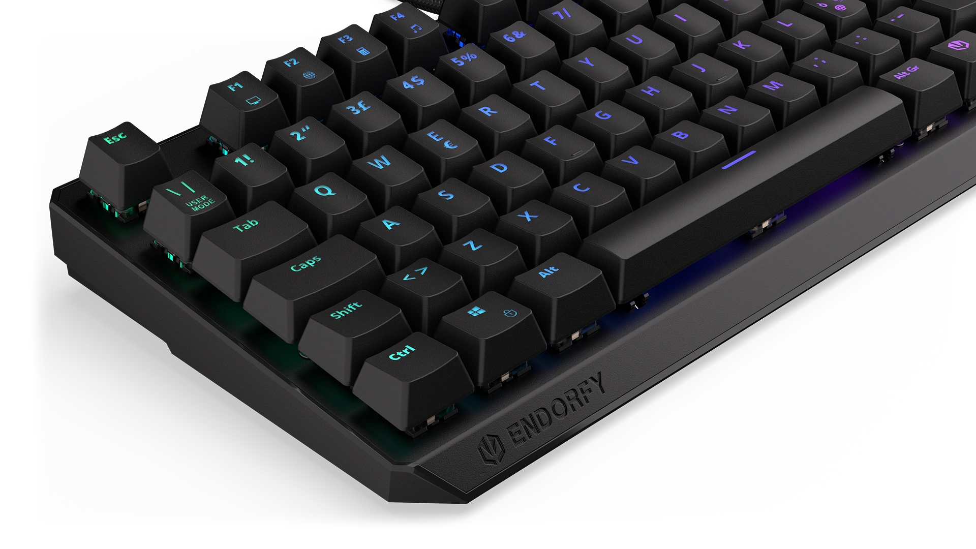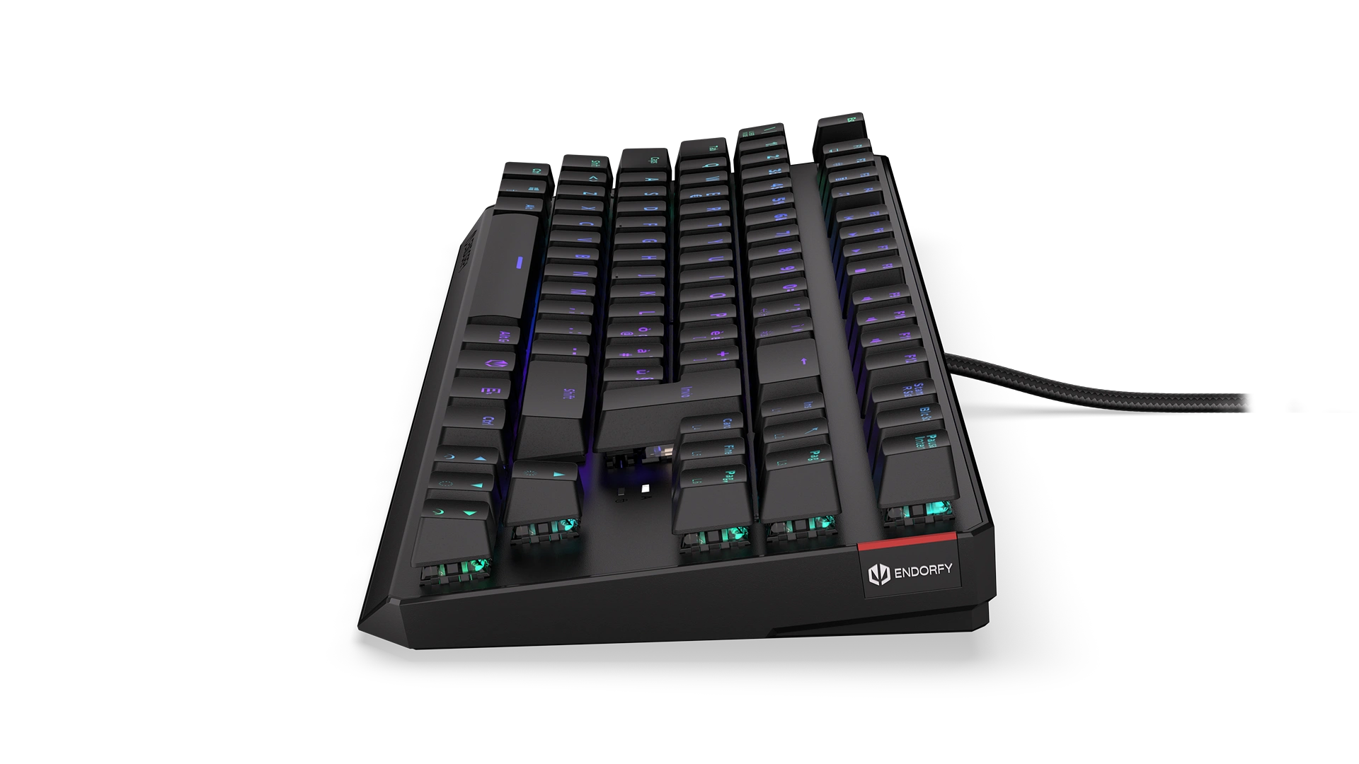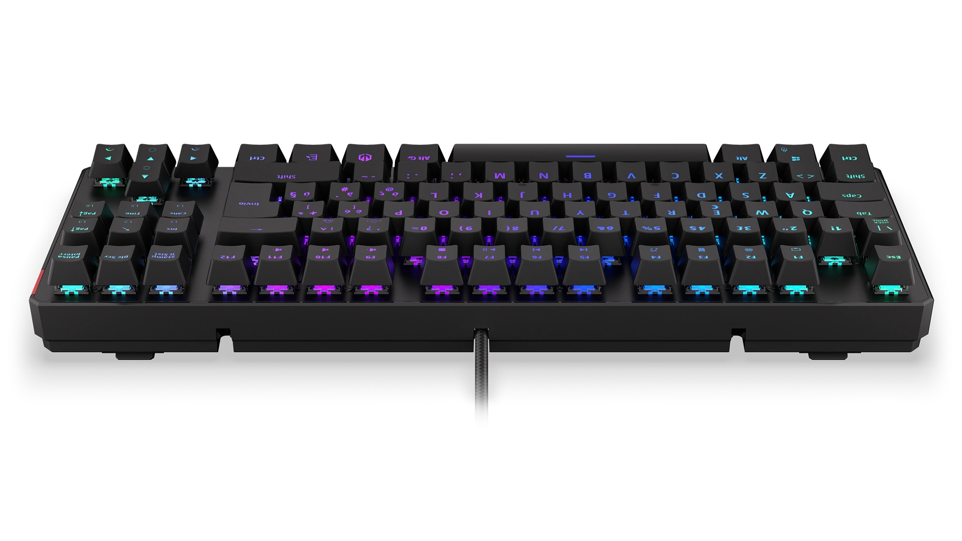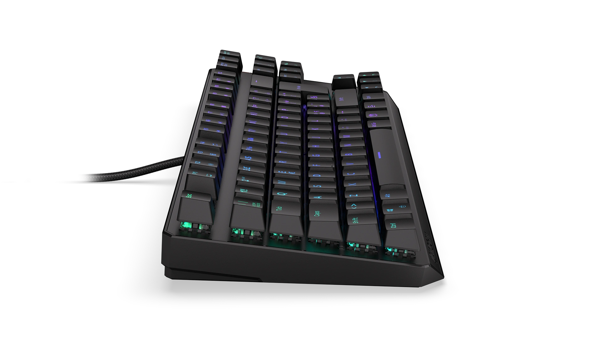 Its reinforced chassis fits 87 ultra-fast Kailh Red switches — a perfect match with FPS and multiplayer games. Each key is covered crowned with a durable ABS keycap with an Italian layout. Such a shield gives you a secure finger position, so you don't have to worry about slipping off a key in a crucial moment of virtual battle. Or in the middle of a call with your boss (if you know, you know).