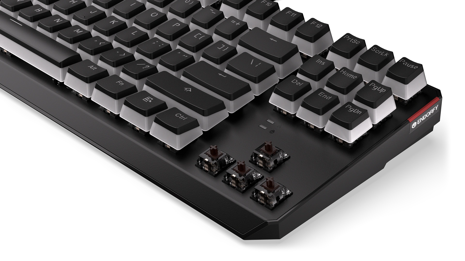 The result of our tireless efforts is the small mechanical keyboard you see in front of you. It’s a full package: gorgeous Pudding PBT keycaps made extra sweet durable with the Double Shot technology. Underneath, snug like a bug in a rug, lie 87 Kailh Brown switches. A no-brainer if you click a lot but want a relatively quiet mechanical keyboard.