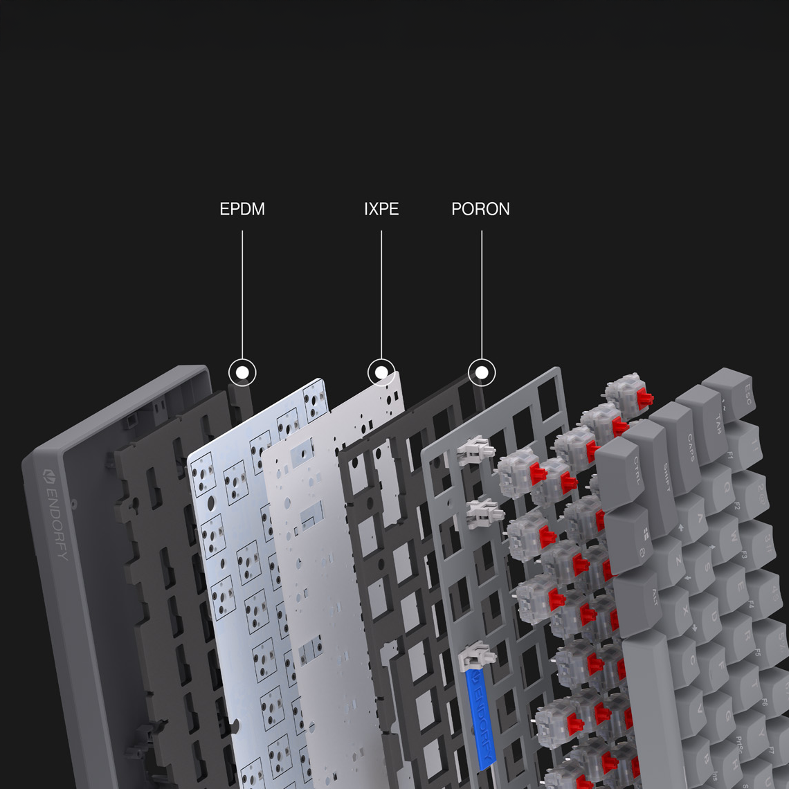 - Three layers of foam (PORON, EPDM, and IXPE) to eliminate vibrations and improve acoustics