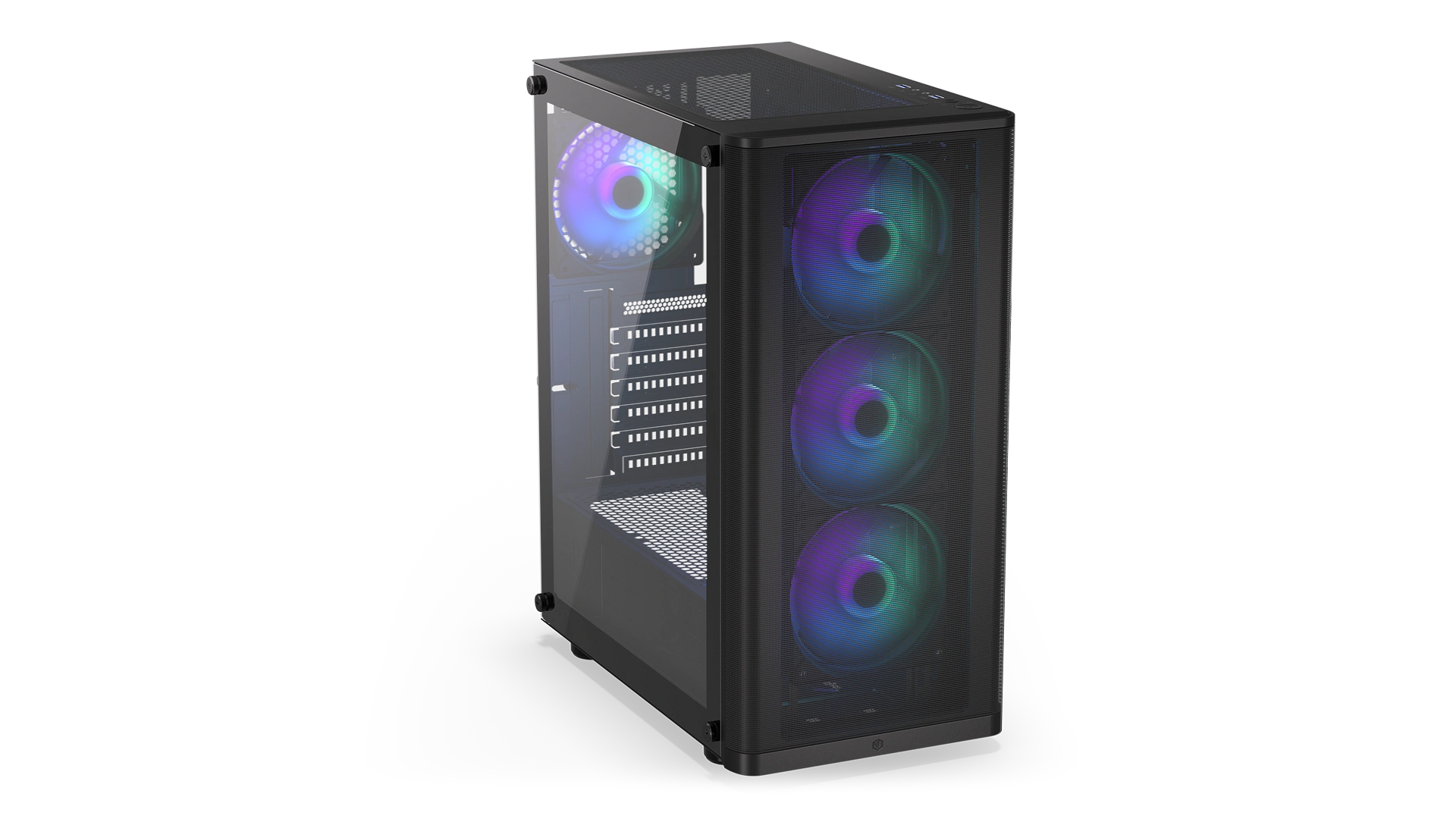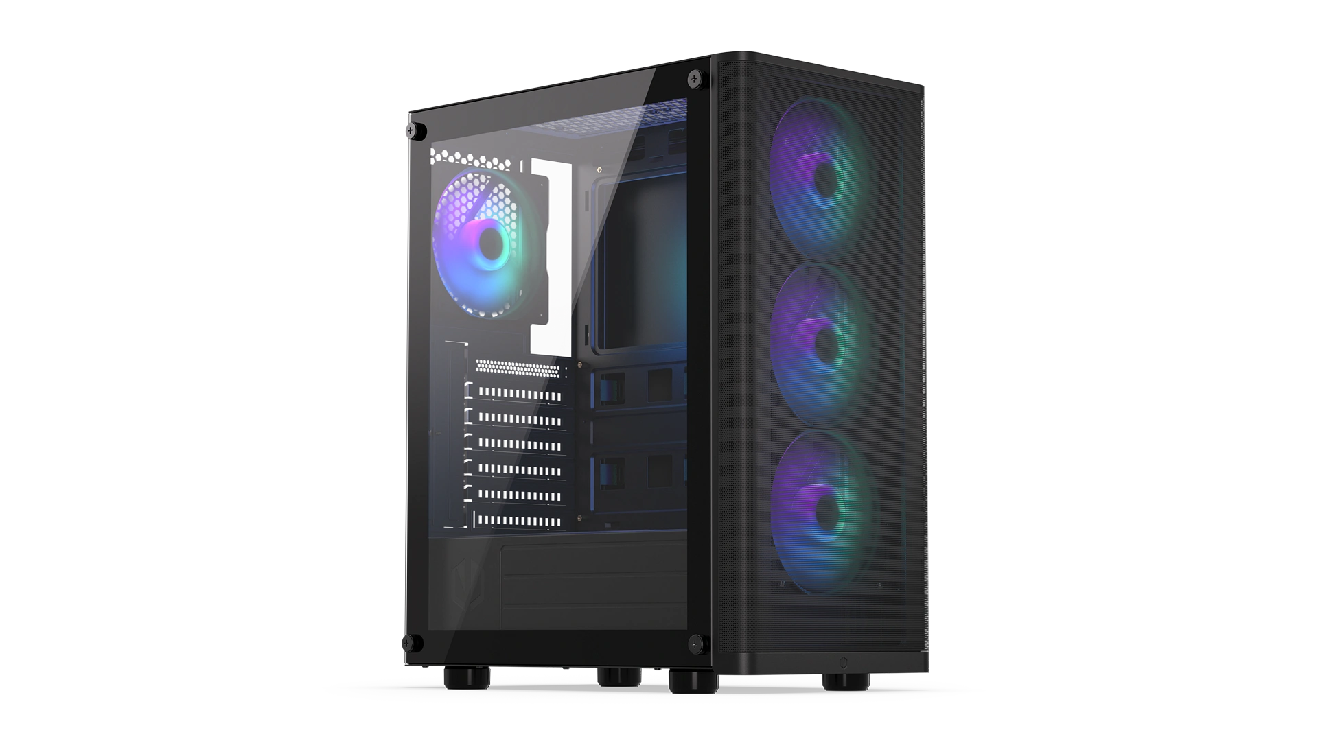 Your components deserve a solid fortress PC case with a tempered glass window. They deserve the Ventum 200 ARGB. The interior of this bad boy is as airy as a spring meadow in the morning – and no wonder, because we've made room for 7 fans in it (and we’re giving you 4 Stratus 120 PWM ARGB fans to start).