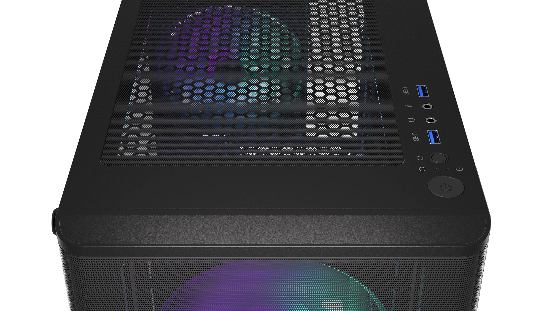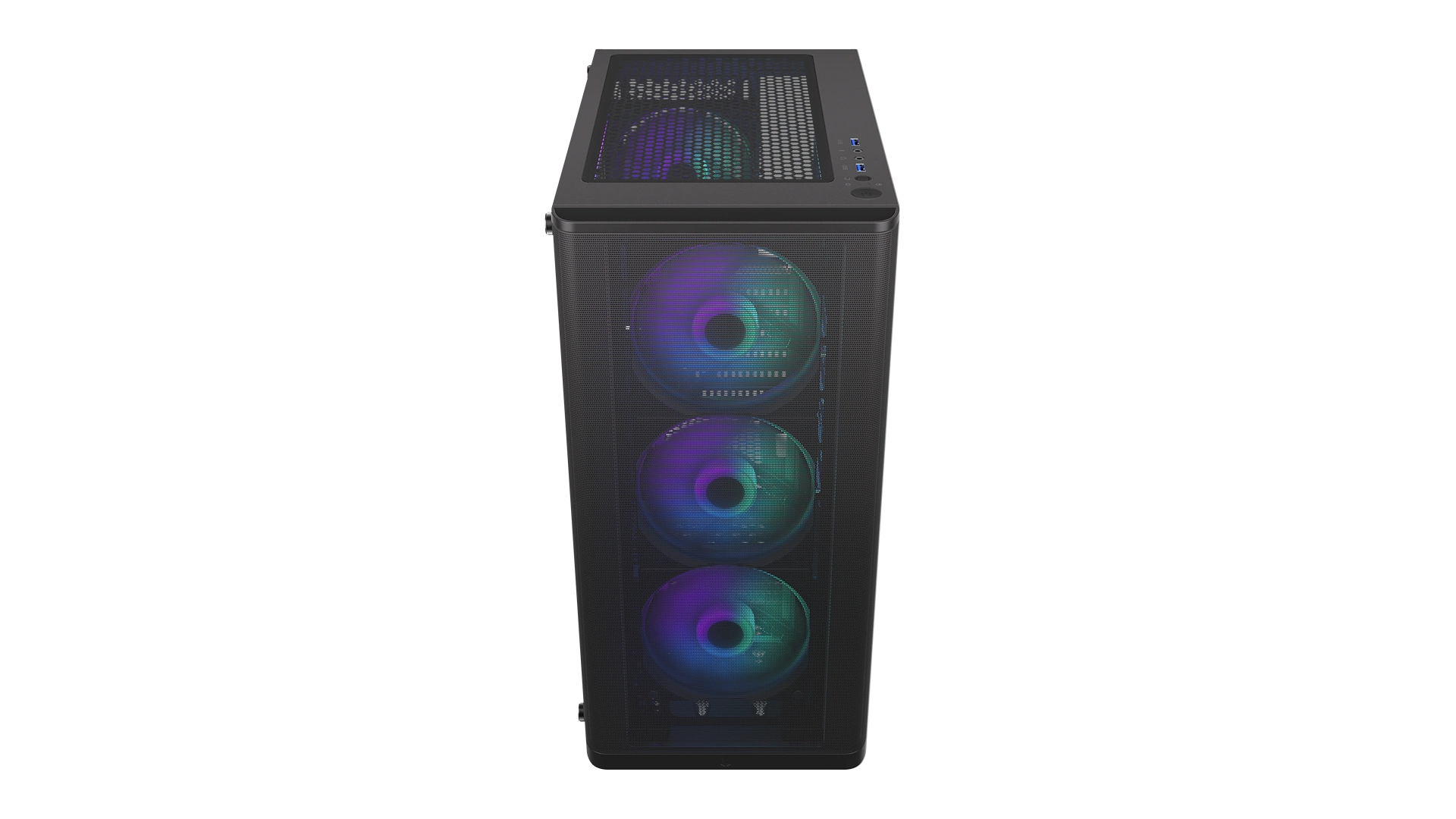 Among other things, the PC case accommodates a full ATX-size motherboard and 3 2.5" drives (or 1 3.5" and 2 2.5" drives). Additionally, you'll able to fit a liquid cooling system with a 360 mm radiator on the front panel and a 240 mm radiator on the top. There's also room for 7 fans – including 4 Stratus 120 PWM ARGB fans you get for a good start – with the PWM splitter you can control them from a single motherboard connector.