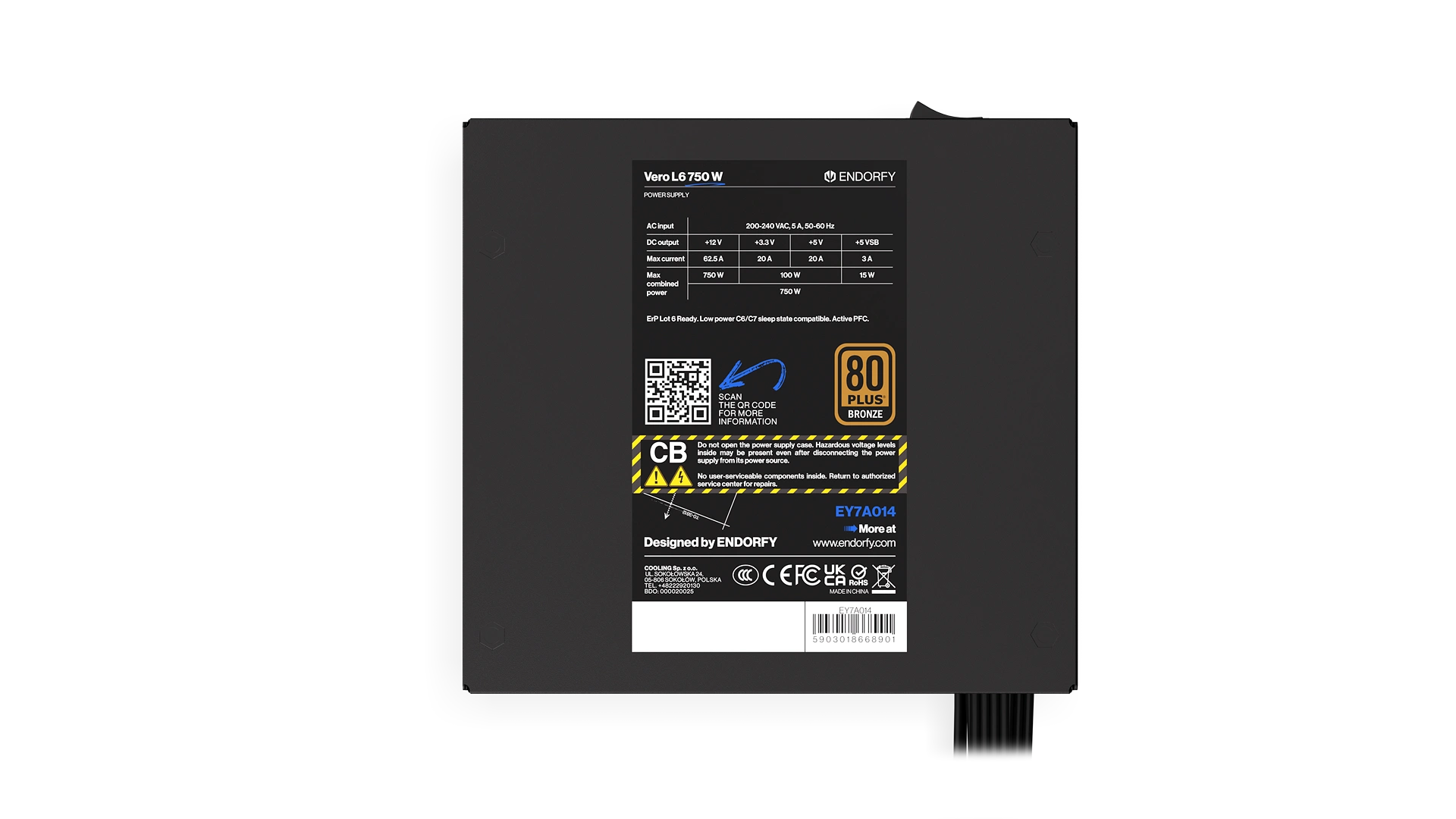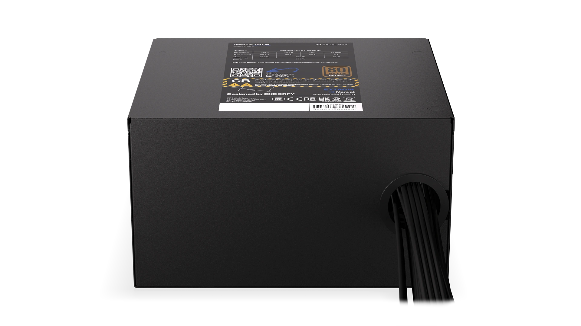 The Vero L6 750 W is a modern ATX 3.1 power supply designed for stable performance and full support of the latest PCIe 5.1 graphics cards. Certified by Cybenetics Silver and 80 PLUS® Bronze, it delivers excellent energy efficiency, while the Stratus fan ensures quiet operation. Combined with high-quality capacitors and a h 5-year warranty, it’s a reliable choice for robust, high-performance builds.