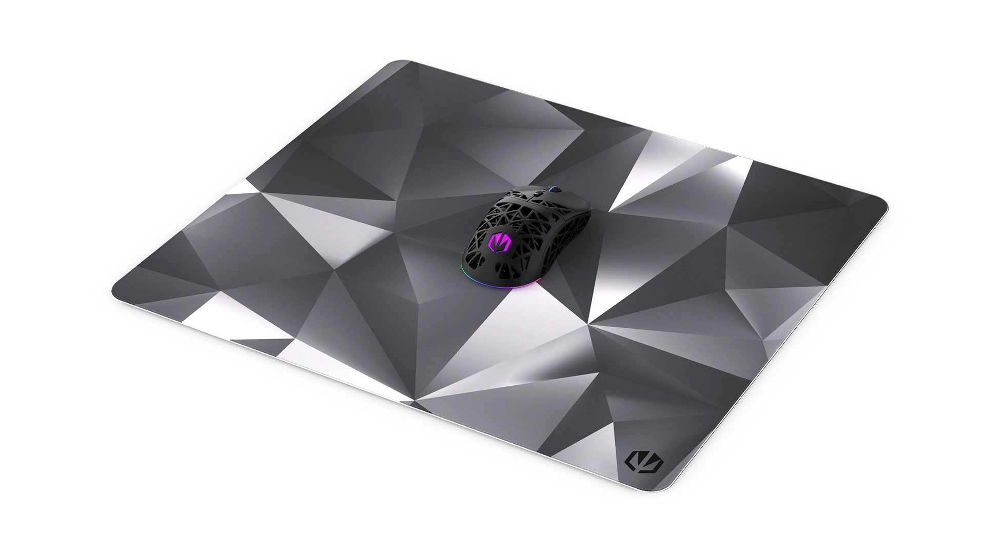 Odporna na zawilgocenie tkanina z nietuzinkowym wzorem graficznym przypominającym ciemny kryształ, obszycie z nadrukiem, antypoślizgowy spód. To hwszystko, czego potrzebujesz od dobrze wykonanej podkładki do przeprowadzania dynamicznych i precyzyjnych ruchów myszką. Crystal Black L wniesie na Twoje biurko ciekawy styl.