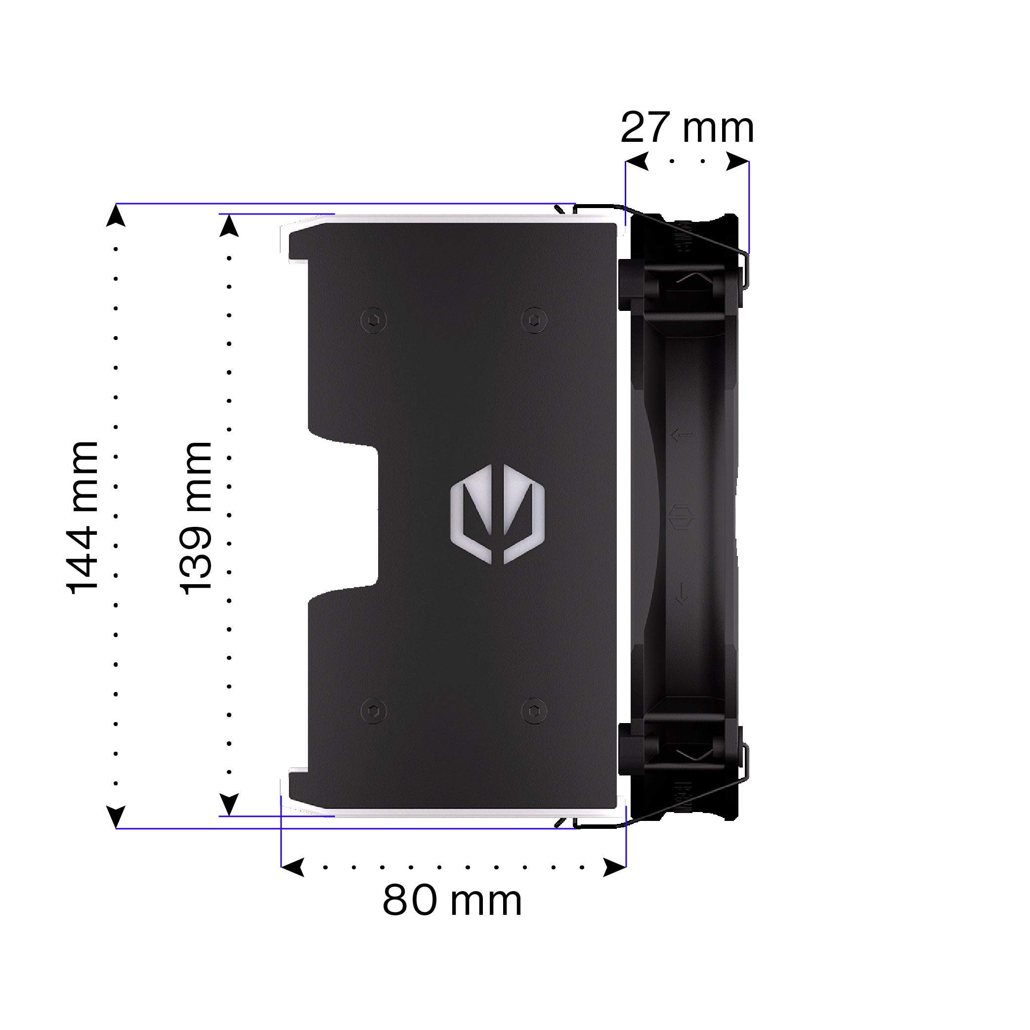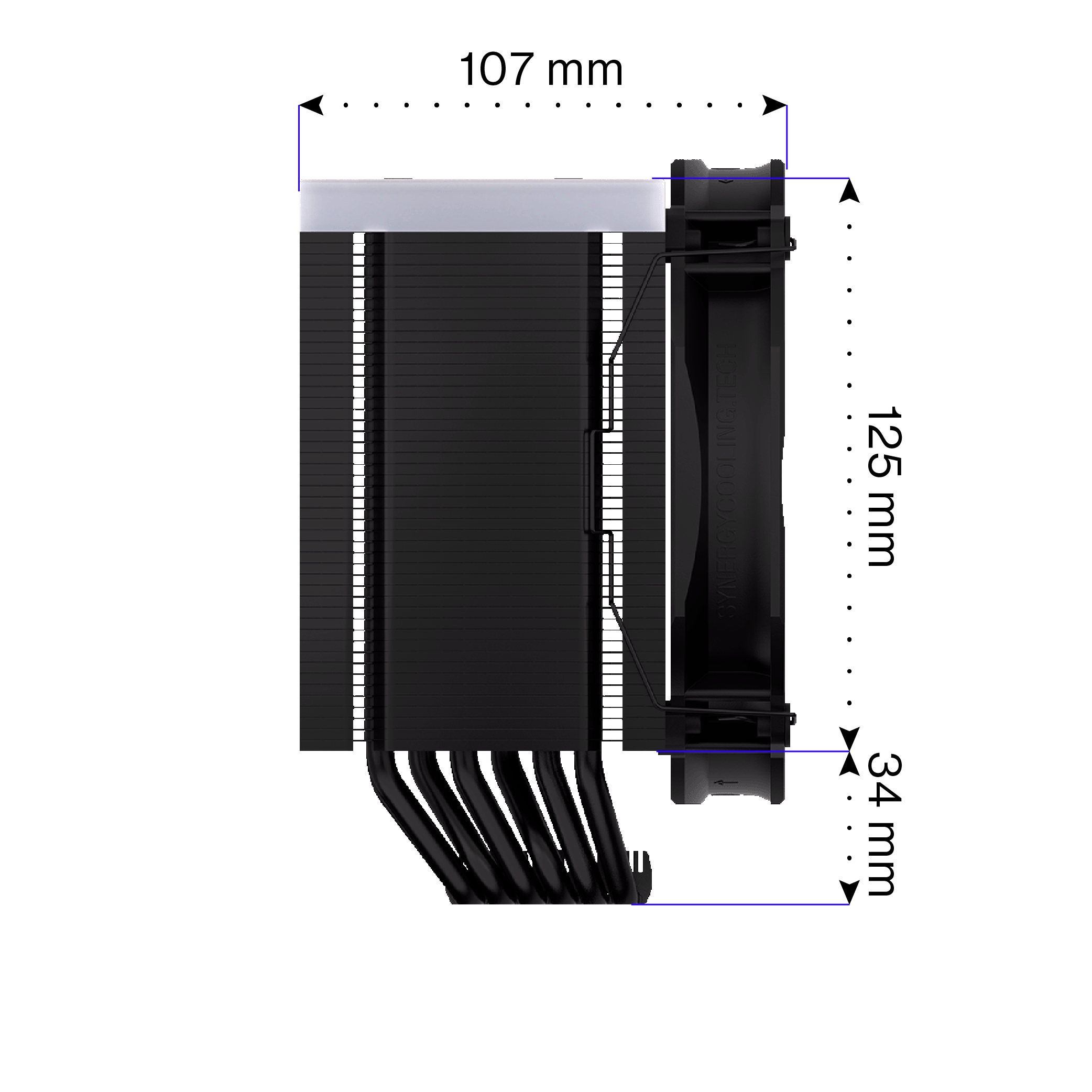 Utrzymany w czarnej kolorystyce układ chłodzenia powietrzem opracowany we współpracy z Synergy Cooling. Wyposażony w wielokrotnie nagradzany wentylator Fluctus 140 mm ARGB z funkcją fan-stop połączony z asymetrycznym, gęsto użebrowanym radiatorem oraz sześć ciepłowodów, Fortis 5 Black ARGB zapewnia najwyższy poziom chłodzenia bez głośnego szumu.